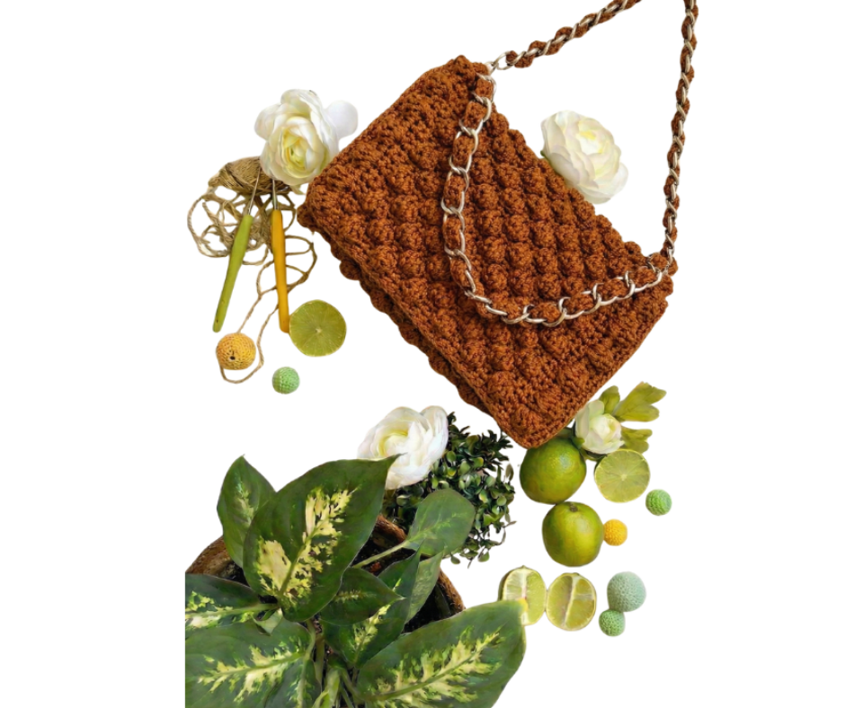 Un bolso de crochet totalmente hecho a mano, confeccionado con cordón de macramé premium de color resistente. Cada puntada y cada etapa del ensamblaje se realizan artesanalmente, incorporando un asa metálica forrada en crochet que aporta un acabado único y auténtico. Ligero, resistente, vegano y creado para perdurar en el tiempo.